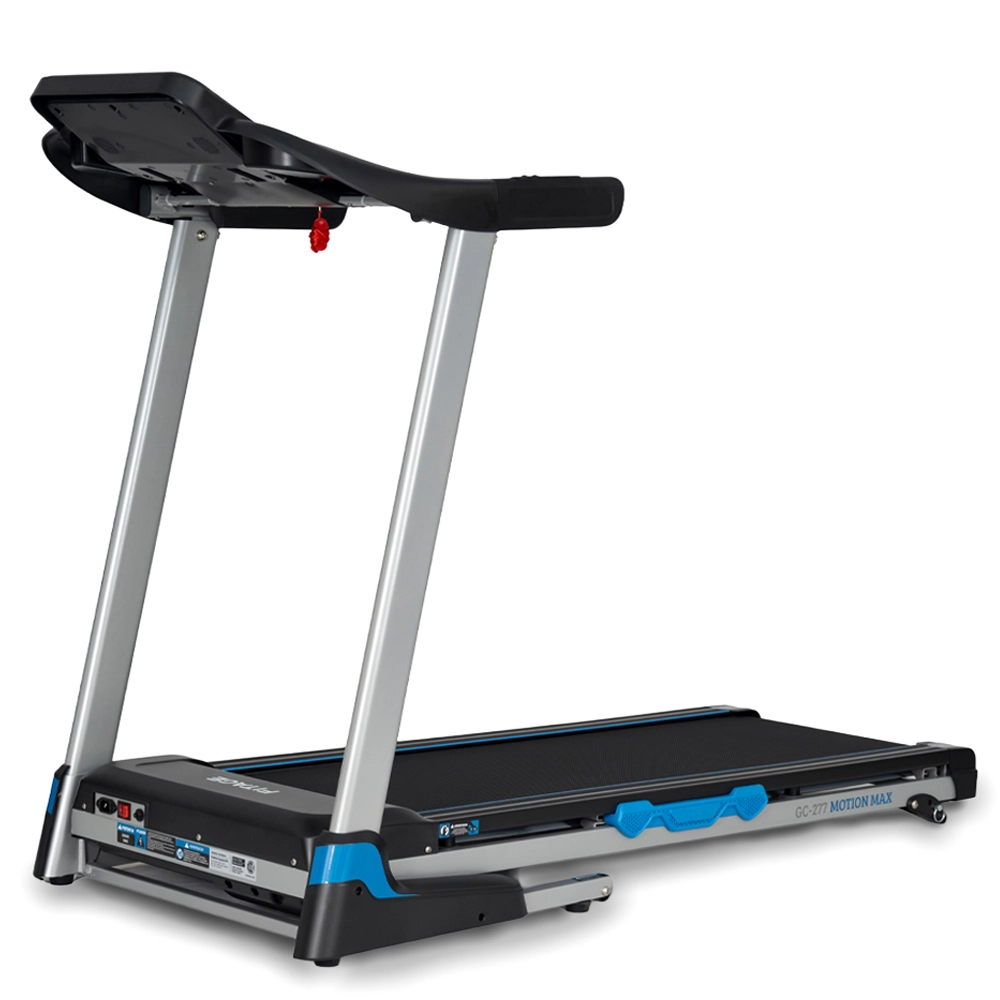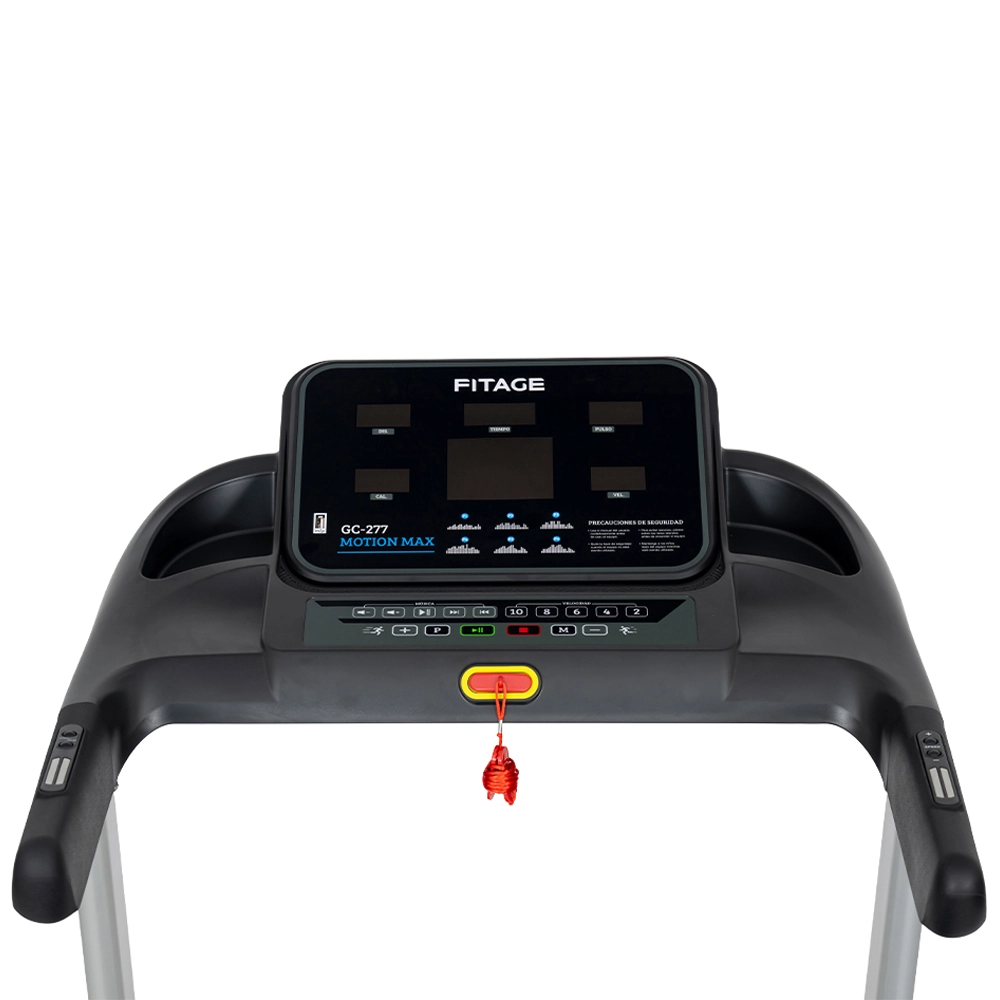 Para una experiencia más completa, la Fitage GC-277 Motion Max incluye puerto USB, entrada MP3 y controlador de sonido desde el display, lo que permite entrenar acompañado de tu música favorita. Además, su botonera en el manillar ofrece acceso rápido para cambiar la velocidad, iniciar o detener la cinta sin interrumpir el ritmo.