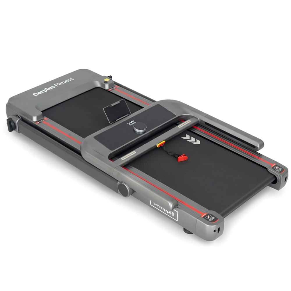 La nueva cinta Corplus C#Ripple cuenta con la tecnología integrada Bluetooth que permite conectar tu equipo con diferentes aplicaciones de entrenamiento. Descargá tu aplicación favorita de tu App Store, personalizala con tus datos y necesidades y empezá a disfrutar de correr en tu cinta en casa.
