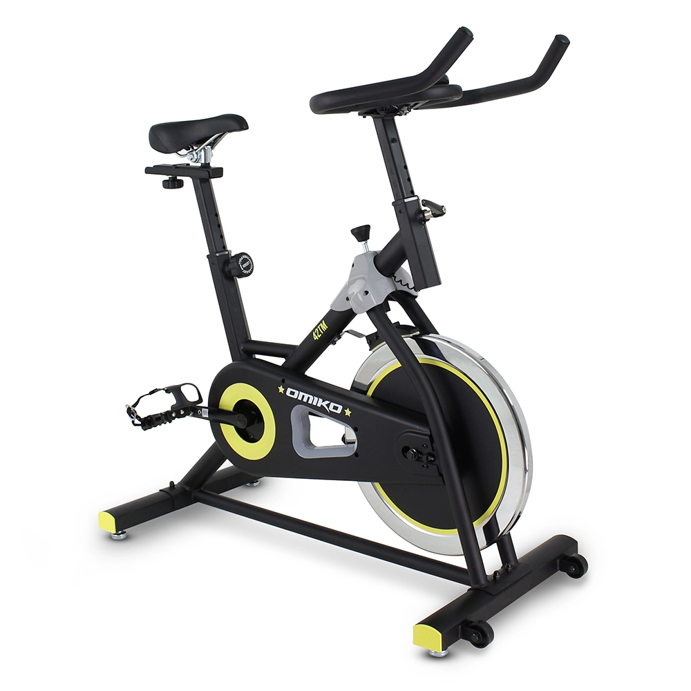 $398.900.-La bicicleta de indoor Omiko 42 TM es la opción ideal para entrenamientos intensivos en casa. Cuenta con display digital con indicadores de tiempo, velocidad, distancia y calorías. Su disco de inercia es de 13 kg. y permite ajustar el nivel de esfuerzo a realizar. Su asiento anti prostático puede ajustarse en altura y distancia. Su manillar recubierto con material antideslizante es ajustable verticalmente. Sistema de transmisión por cadena y freno de emergencia. Ruedas para su traslado. Pedales con agarre de seguridad para el pie. Dimensiones: 105 x 100 x 50 cm.