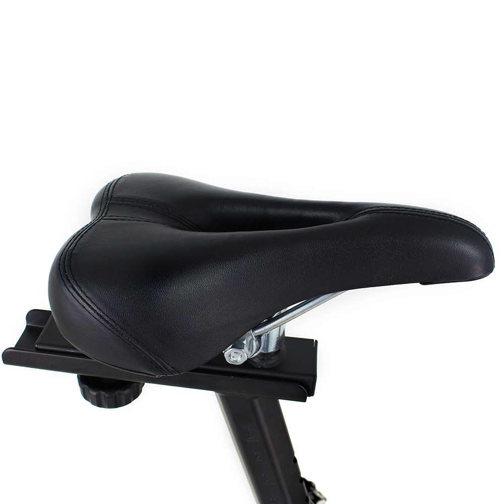 Bicicleta indoor residencial, disco 13kg con cadena, resiste 115 kg, color negra.