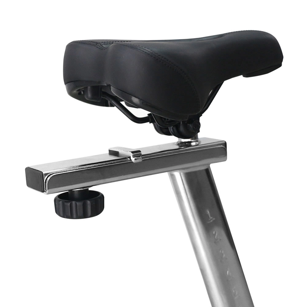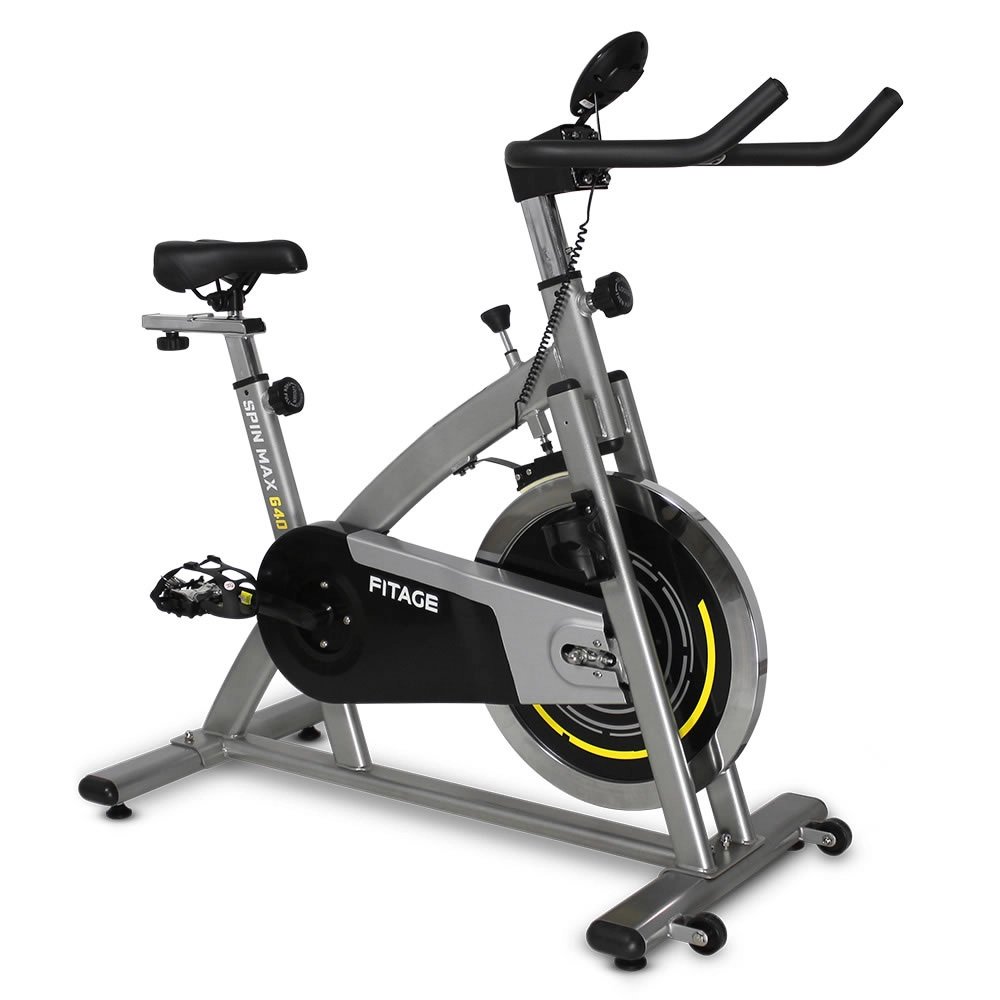 Fitage Spin Max 640 es una nueva opción de entrenamiento para quienes buscan una experiencia de ejercicio indoor eficiente. Es de uso residencial y su computadora permite que el usuario lleve un control de scan, tiempo, velocidad, calorías y distancia. El asiento es ajustable en altura y distancia, presenta pedales de metal con correa de ajuste y puntera y ruedas para su traslado. Para aumentar la seguridad, su freno es por fricción con bloqueo de emergencia. Manubrio ajustable en altura con grips antideslizantes.