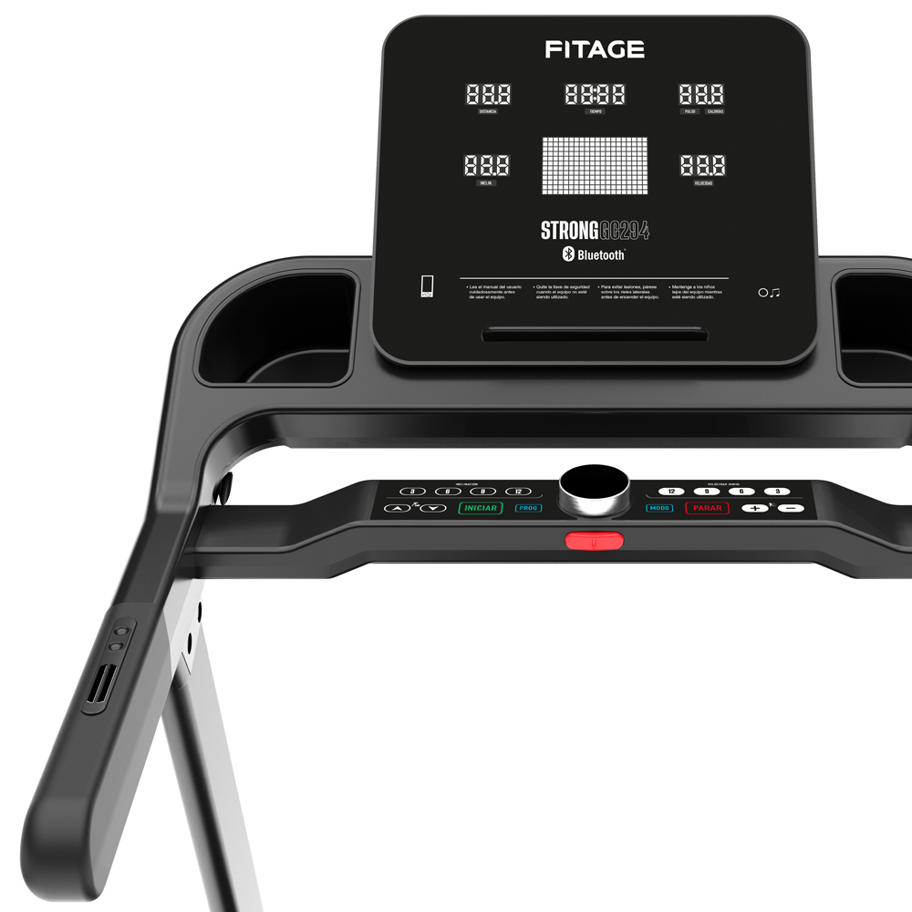 La nueva cinta Fitage GC- 294 STRONG cuenta con la tecnología integrada Bluetooth que permite conectar tu equipo con diferentes aplicaciones de entrenamiento. Descargá tu aplicación favorita de tu App Store, personalizala con tus datos y necesidades y empezá a disfrutar de correr en tu cinta en casa.