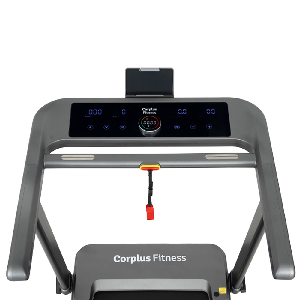 Las imágenes son ilustrativas, con el fin de mostrar todas las características de la cinta. La pantalla del equipo Corplus A#Maxim brinda información de tiempo, distancia, velocidad, calorías, pulso, inclinación y programas. Las aplicaciones no están incluidas en el producto, ni se muestran en la pantalla de la cinta. Las aplicaciones se descargan en celulares, tablets, smart TVs o computadoras según la compatibilidad de los dispositivos. Estos dispositivos no vienen incluidos en la compra del equipo.
